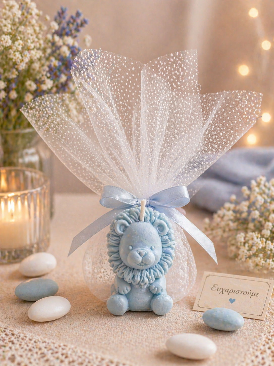 Μπομπονιέρα λιονταράκι από φυτικό κερί αρωματική.